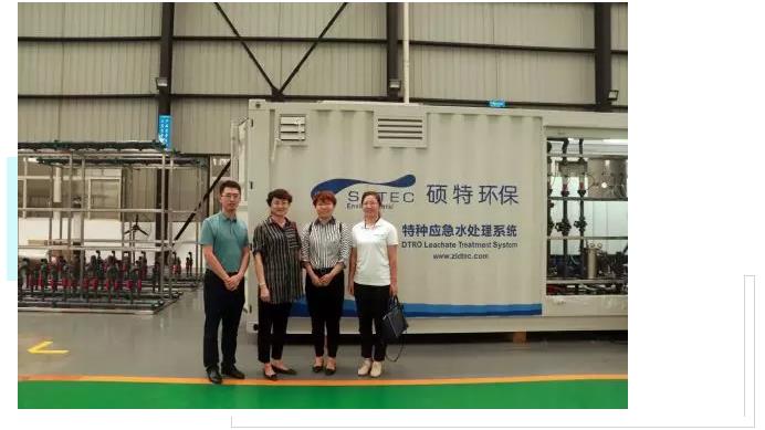 Our company provides a set of DTRO equipment with a processing capacity of 100m³/d for pilot trials in Deyang Yuanjia Water Treatment Station. The company’s deputy general manager Huang Xingjun took everyone into the container to explain the operation and technical principles, and collected water samples on site for your reference.